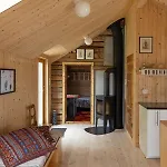 Juntamente com escrivaninha, a acomodação de Kvalnes inclui lareira. Secador de cabelo, lençóis de banho e toalhas estão incluídos para maior conforto.